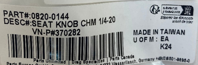 - Chrome-plated, aluminum knob with knurled edge comes with one 1/4"-20 stud.