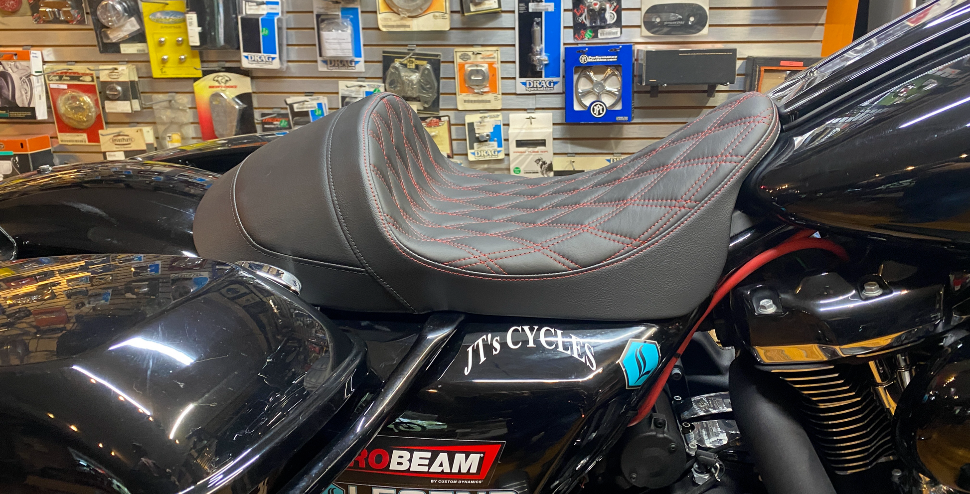 Drag Specialties Red Diamond Stitch Low Solo Seat fits 2008-2024 Harley Touring