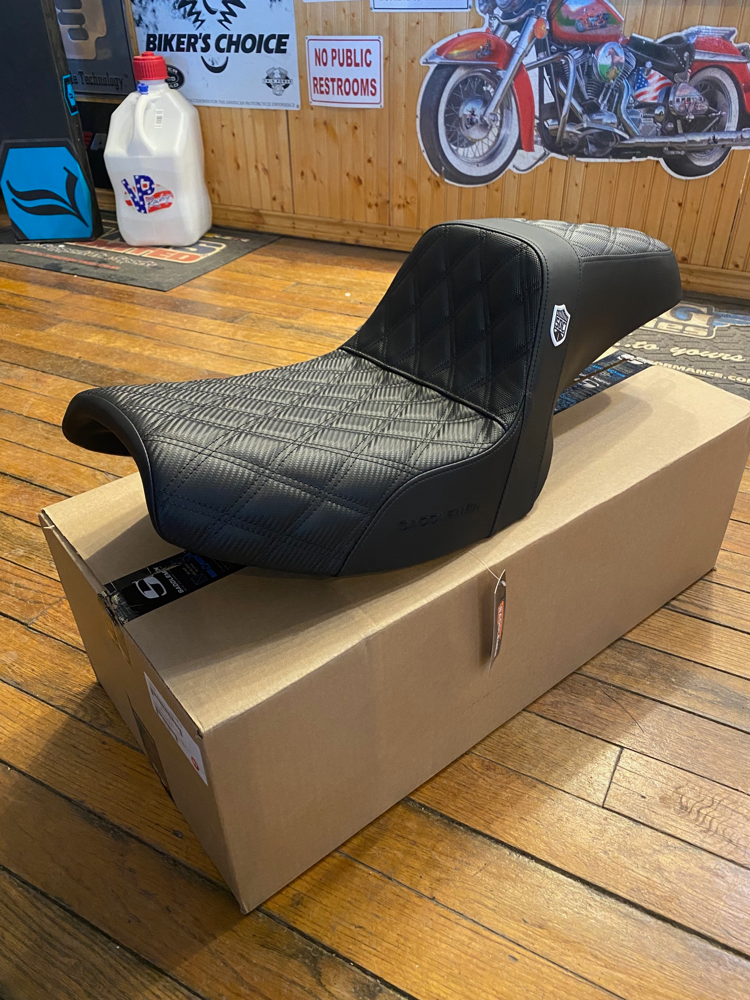 We feature top motorcycle seat brands known for comfort, style, and performance including Saddlemen, Drag Specialties Seats, Le Pera, Mustang, Slyfox, and Danny Gray, offering premium options for every rider and bike style.