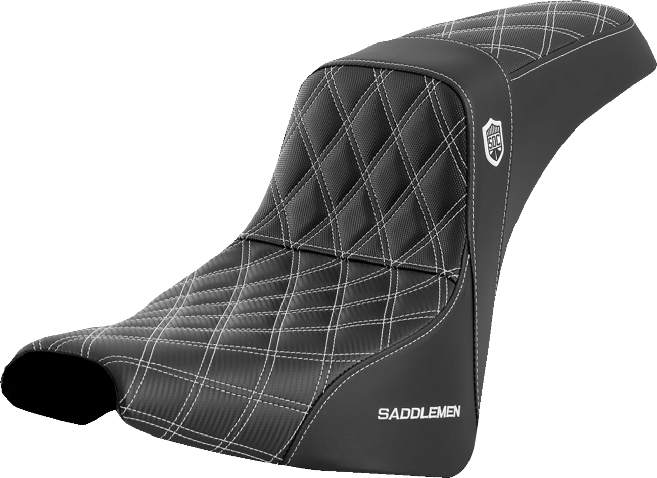 - Crafted with Saddlemen’s carbon fiber front, black gripper lumbar, and passenger area and Saddlehyde sides with Saddlemen LS stitching
